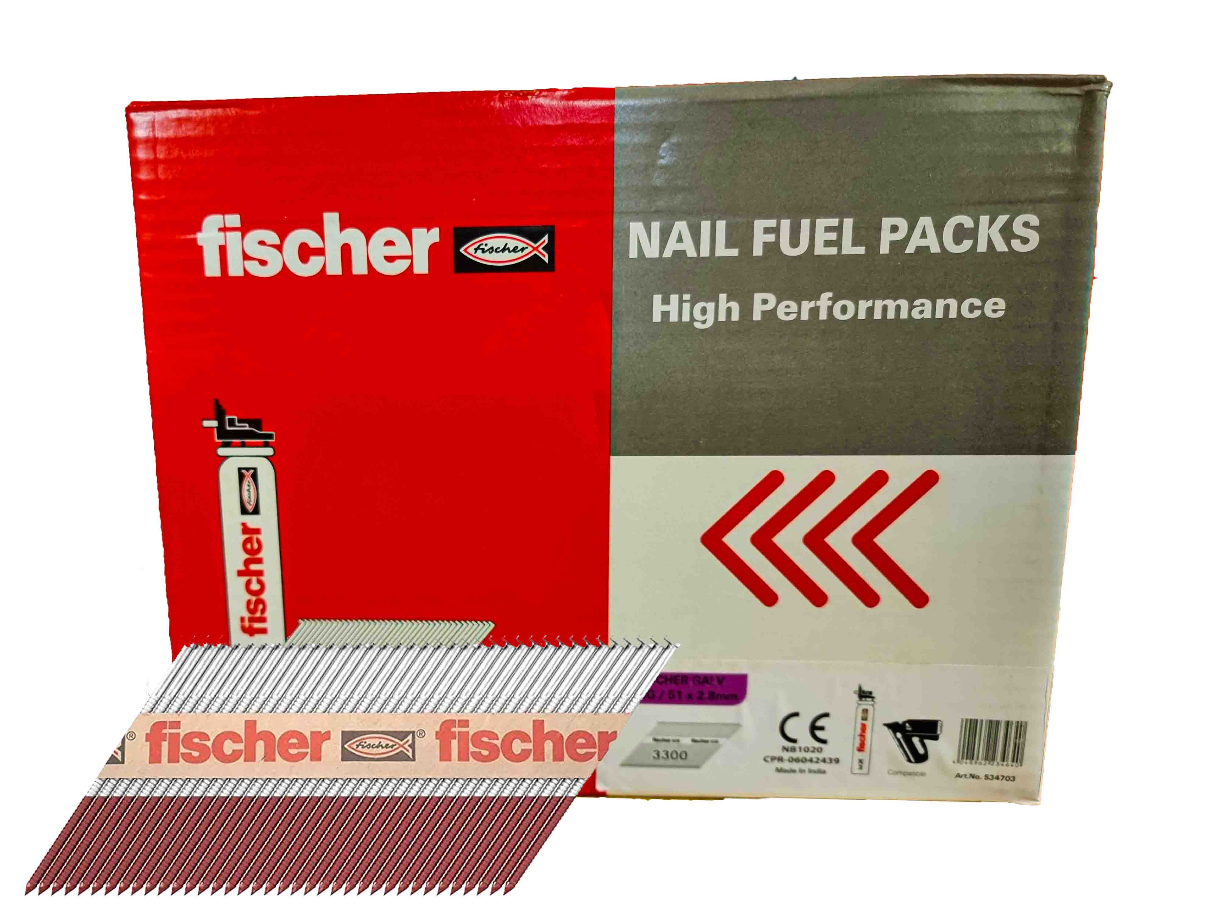 Fischer First Fix Nail Fuel Pack - 2.8 x 51mm Ring Galv (Box 3300)
