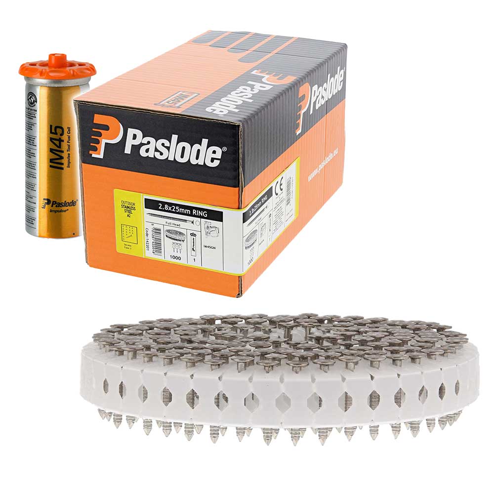 Paslode 1st Fix 2.8mm x 51mm Ring Shank Stainless Steel Nails 1,100 - 1 x Fuel Cell - For IM350