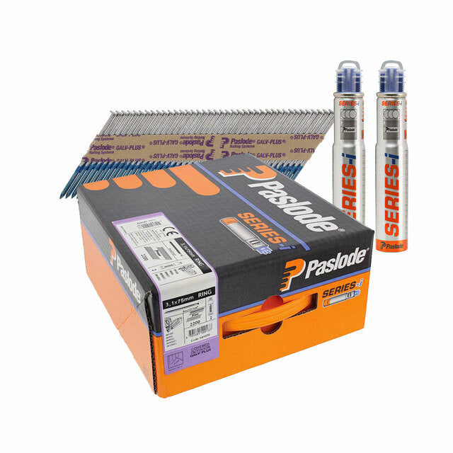 Paslode 1st Fix 3.1mm x 75mm Ring Shank Galv Plus Nails 2,200 - 2 x Fuel Cells - For IM350
