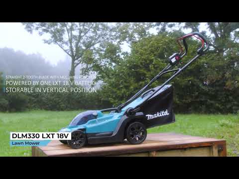 The Makita DLM330RT push-type battery lawn mower kit includes 1x 5Ah 18V LXT battery and DC18RC fast charger. This compact and lightweight 33cm cut cordless lawnmower is powered by a single 18V Li-ion LXT slide-type battery, to supply energy to the powerful 18V motor, with soft start for smooth start-ups, to deliver up to 4,300 rpm. This model comes with a mulching plug as standard and can easily be switched between mulching and collection modes.